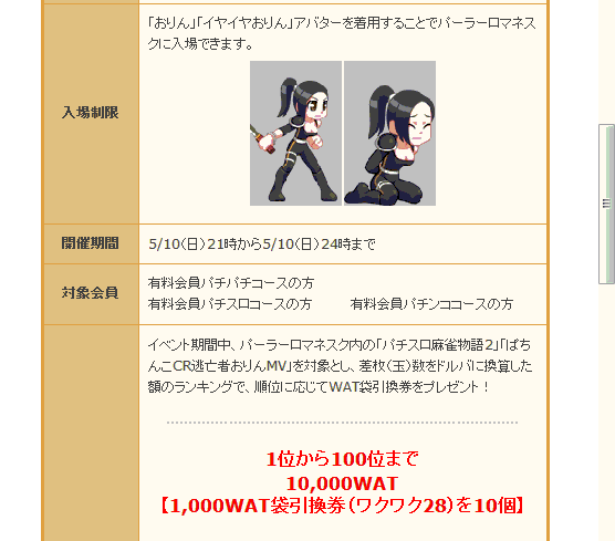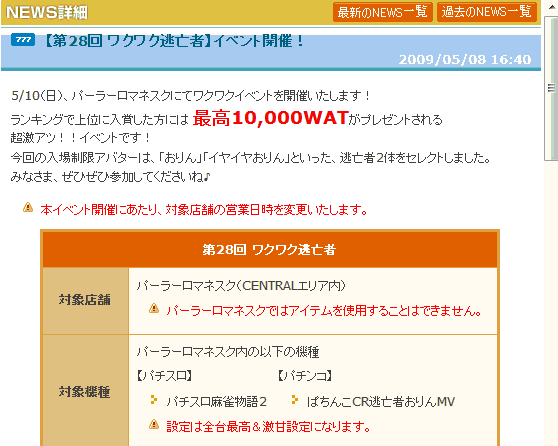 イベント詳細ページ(ワクワク系・アバター制限の出玉ランク系)20090510